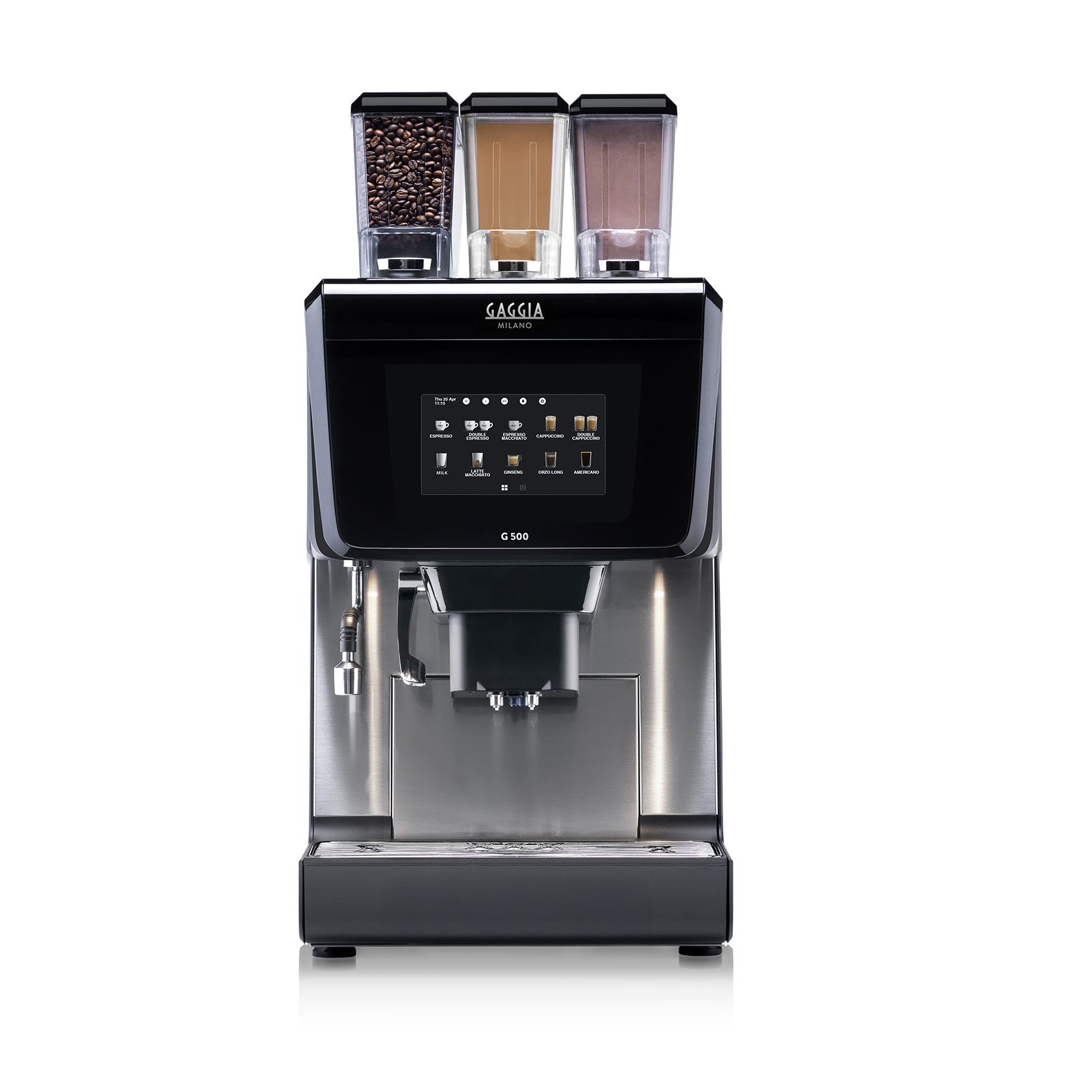 Designed to adapt to your business needs, G 500 offers exceptional flexibility. Choose between 7" or 10" touchscreen displays for an intuitive user experience, and select your preferred milk system—Prime Milk or LatteVelluto—for barista-quality foam every time. With customisable layouts and an 'Optional Menu' of advanced features, this machine is built to deliver tailored solutions for hotels, restaurants, and offices that demand performance and style.